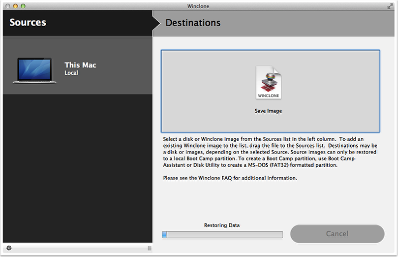 You will need to have a Boot Camp partition on the destination Mac. Instructions for creating a Boot Camp partition can be found in the Winclone help document "Creating a Boot Camp partition".