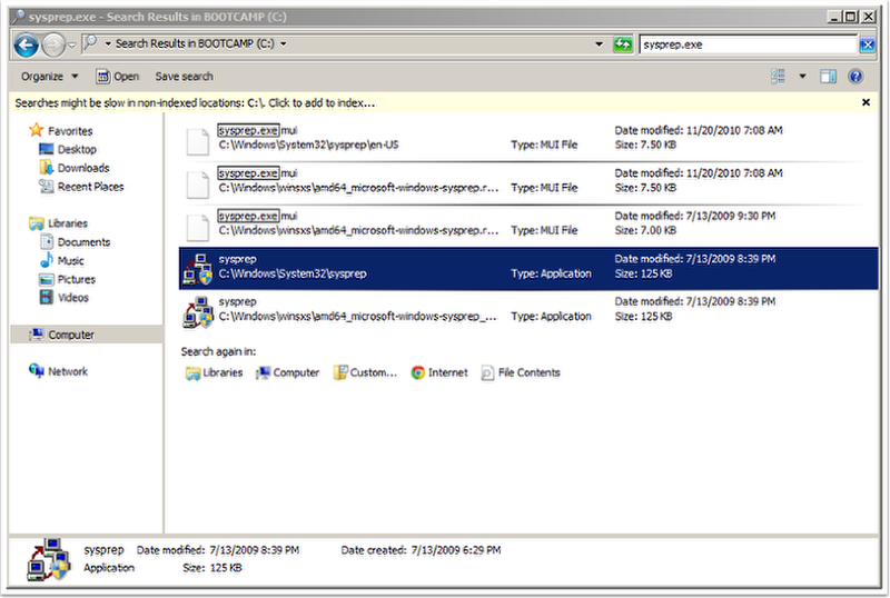 At first glance, the process of moving a Windows PC to Boot Camp on the Mac may appear to be a daunting task. However, using the process outlined above will save many hours otherwise spent installing the Windows operating system and programs, personalization settings and files from scratch. Using Winclone with Sysprep makes it possible to move your PC system, programs, documents and settings to the Mac in one fell swoop.